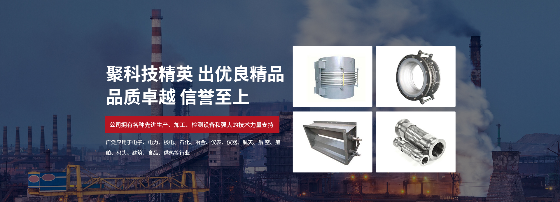 產(chǎn)品廣泛應(yīng)用于電子、電力、核電、石化、冶金、儀表、儀器、航天、航 空、船舶、碼頭、建筑、食品、供執(zhí)管等行業(yè),先后為數(shù)百家大型企業(yè)提供各種型號(hào)的優(yōu)質(zhì)補(bǔ)償器。