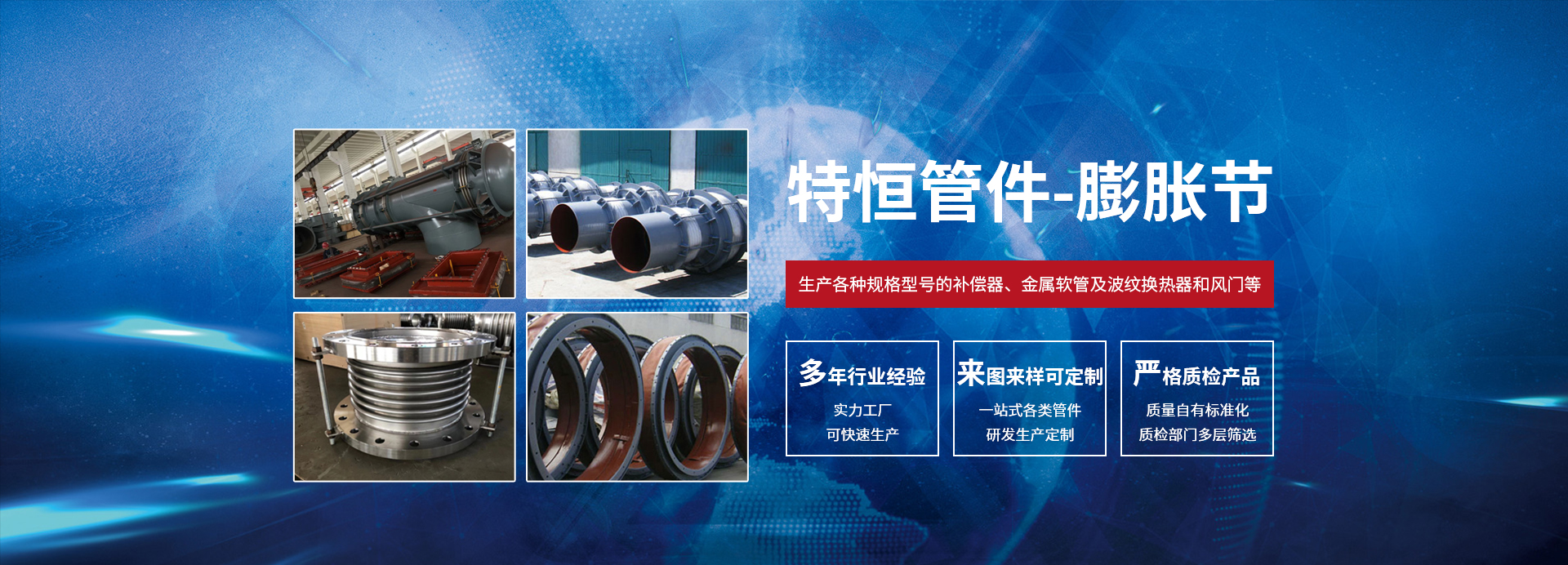 泰州市特恒管件有限公司坐落于風(fēng)景如畫(huà)的江蘇省泰州市,是專業(yè)從事設(shè)計(jì)、生產(chǎn)金屬、非金屬膨脹節(jié)、橡膠補(bǔ)償器、不銹鋼金屬軟管、風(fēng)門等的廠家。公司擁有各種先進(jìn)生產(chǎn)、加工、檢測(cè)設(shè)備和強(qiáng)大的技術(shù)力量支持。我公司根據(jù)國(guó)內(nèi)先進(jìn)的加工成型工藝、科學(xué)的管理體制、先進(jìn)的工裝設(shè)備不斷充實(shí)、完善質(zhì)量保證體系,從而創(chuàng)造出高品質(zhì)的產(chǎn)品。聚科技精英、出優(yōu)質(zhì)精品、品質(zhì)卓越、信譽(yù)至上是我們的不懈追求。我公司愿以可靠的質(zhì)量和良好的信譽(yù),“誠(chéng)信、公正、求實(shí)、創(chuàng)新”的經(jīng)營(yíng)理念與廣大用戶攜手合作,共創(chuàng)美好未來(lái)。我公司采用先進(jìn)的標(biāo)準(zhǔn)進(jìn)行設(shè)計(jì)、生產(chǎn)各種規(guī)格型號(hào)的補(bǔ)償器、金屬軟管及波紋換熱器和風(fēng)門等。廣泛應(yīng)用于電子、電力、核電、石化、冶金、儀表、儀器、航天、航 空、船舶、碼頭、建筑、食品、供熱等行業(yè),曾先后為多家大型企業(yè)提供各種型號(hào)的優(yōu)質(zhì)補(bǔ)償器,產(chǎn)品遠(yuǎn)銷國(guó)內(nèi)外。我公司擁有一批專業(yè)技術(shù)人員和優(yōu)秀的售后服務(wù)人員,以確保客戶在選型號(hào)以及客戶在產(chǎn)品安裝、運(yùn)行中出現(xiàn)問(wèn)題時(shí)可以得到及時(shí)、專業(yè)、有效的處理,并為客戶在設(shè)計(jì)、安裝、運(yùn)行中提供專業(yè)的技術(shù)指導(dǎo)。